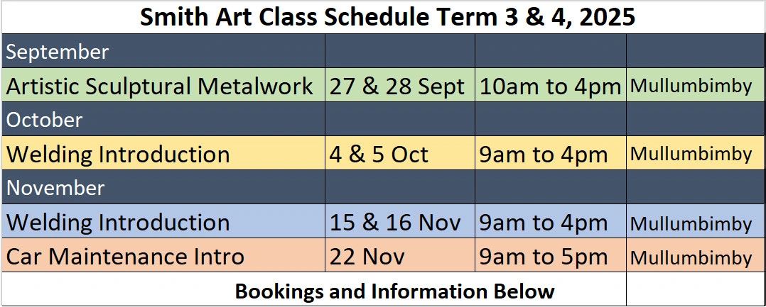 This class is a logical choice if you are a previous welding student or existing hobbyist who wants to expand your artistic and practical skill base. Novices who want a safe “taste” of metalwork, are also encouraged to participate.